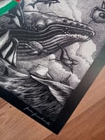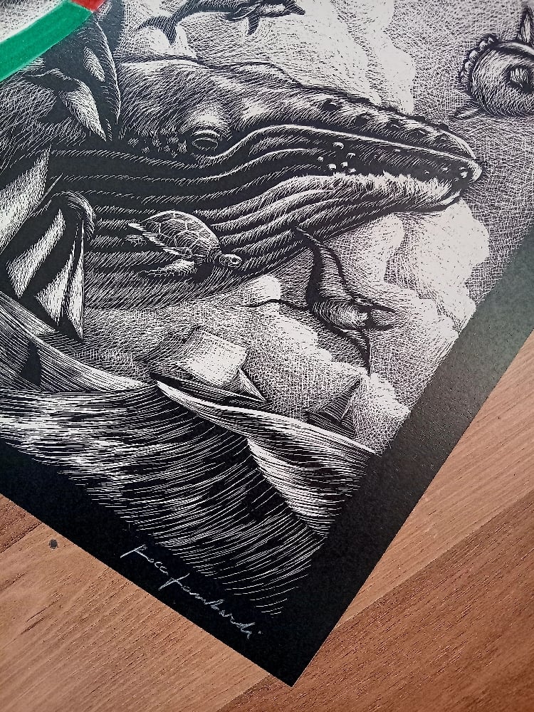 Stampa digitale su carta Fedrigoni Betulla 285 gr 30x30 cm firmata, con dettaglio colorato a mano.